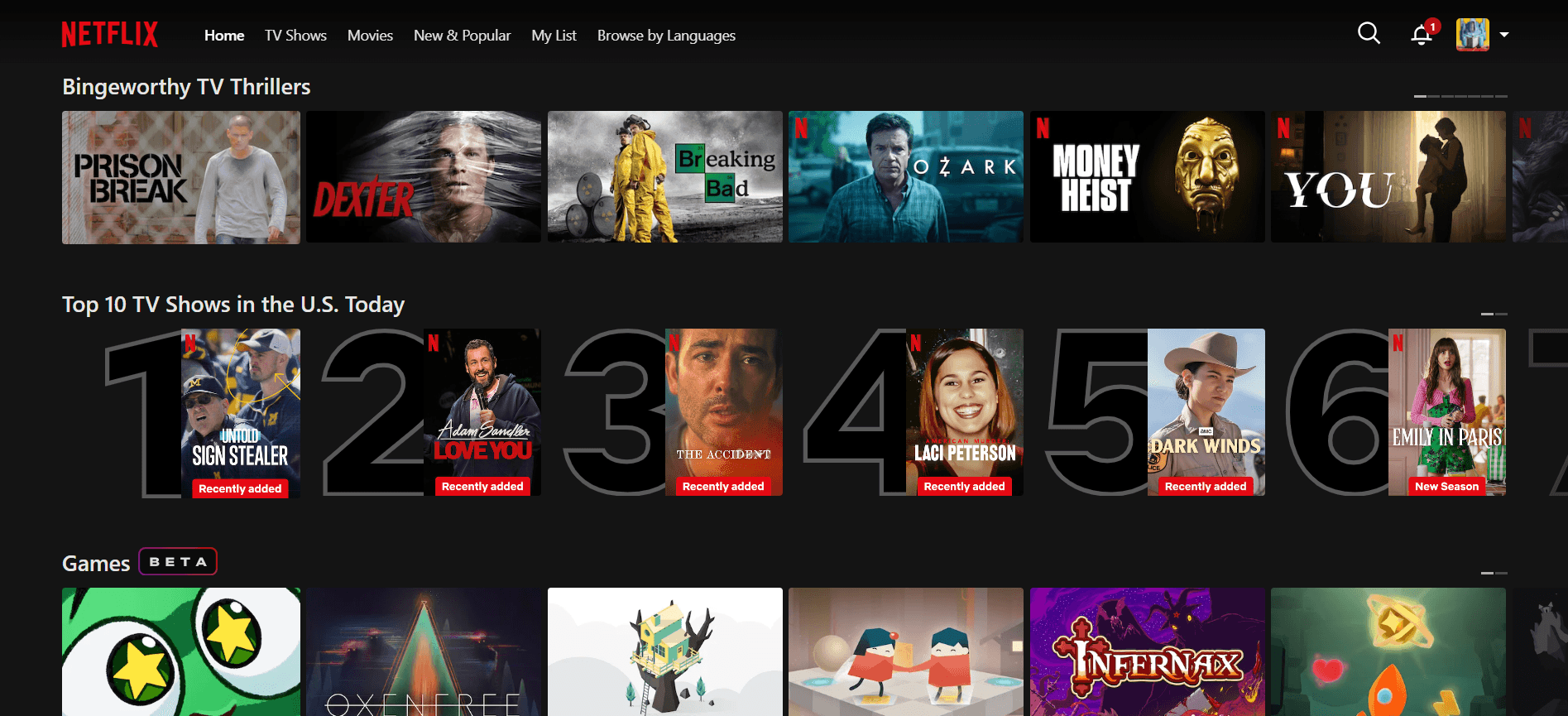 This principle pertains to elements that are aligned along a continuous line or path, suggesting to users that they can easily navigate through them, often with a single click. Netflix utilizes the Gestalt Principle of continuity to visually indicate that the items displayed in rows are connected and share a common relationship, encouraging users to explore these related items seamlessly.