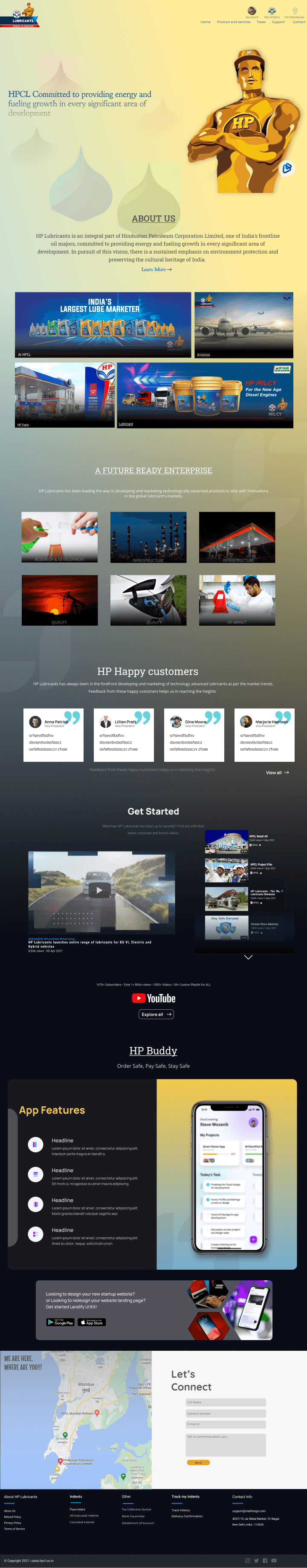 Iconic HPCL Oil Man with the HPCL tag line with the about us section which will guide new users specify what is HPCL.