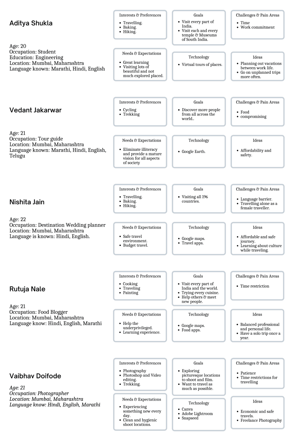Persona map Findings