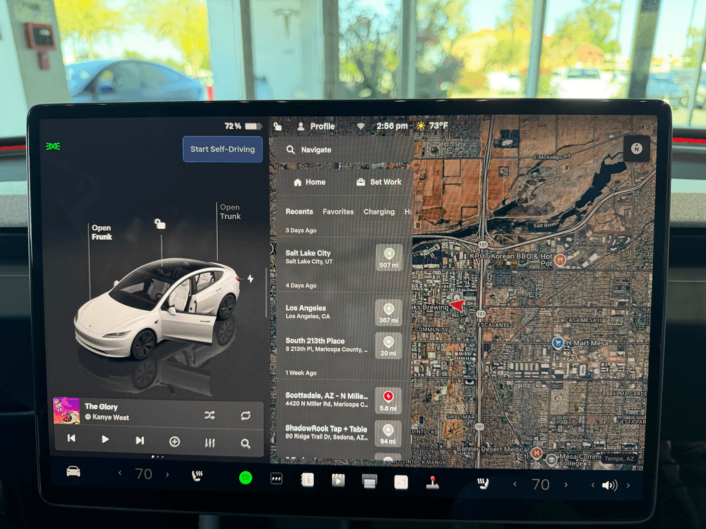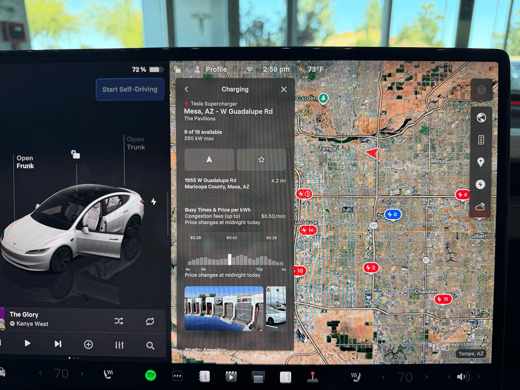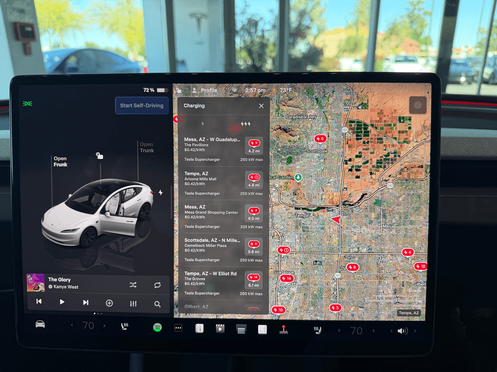 As of April 2026, there are two main ways to start navigation to a charging station on Tesla infotainment.